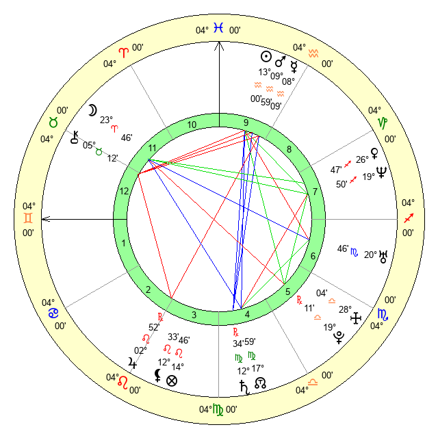 | Saturn | 13 Virgo 0 | 17 Pisces 31 | 9 Virgo 31 |
