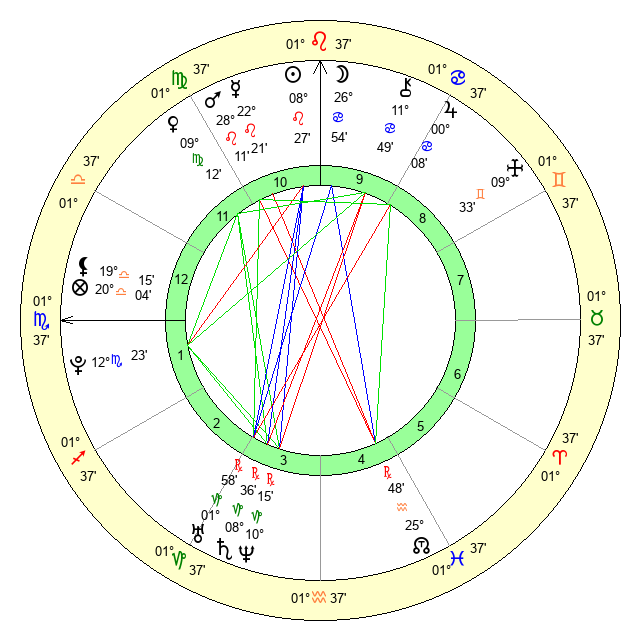 | Moon | 26 Cancer 43 | 29 Libra 51 | 13 Scorpio 10 |
