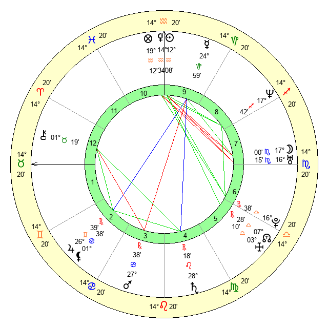 | Moon | 17 Scorpio 4 | 20 Pisces 13 | 8 Leo 53 |