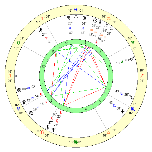 | Jupiter | 9 Aquarius 0 | 11 Gemini 25 | 26 Aquarius 11 |