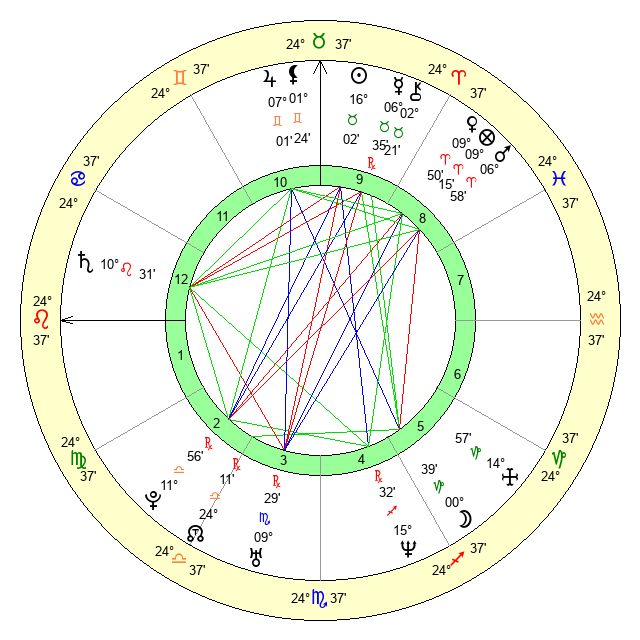 | Mars | 6 Aries 58 | 8 Leo 16 | 12 Taurus 57 |