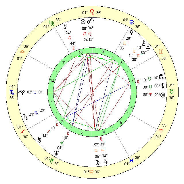 | Mercury | 24 Leo 44 | 9 Leo 12 | 5 Virgo 12 |
