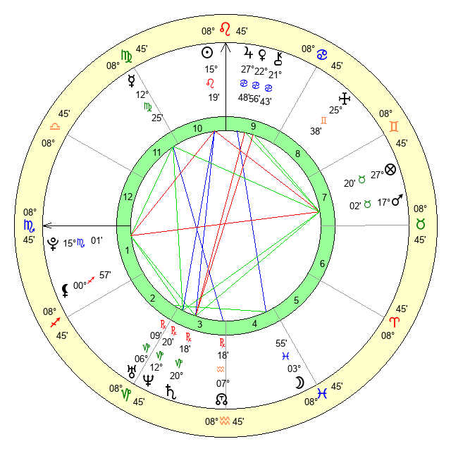 | Mercury | 12 Virgo 25 | 4 Leo 47 | 11 Virgo 43 |