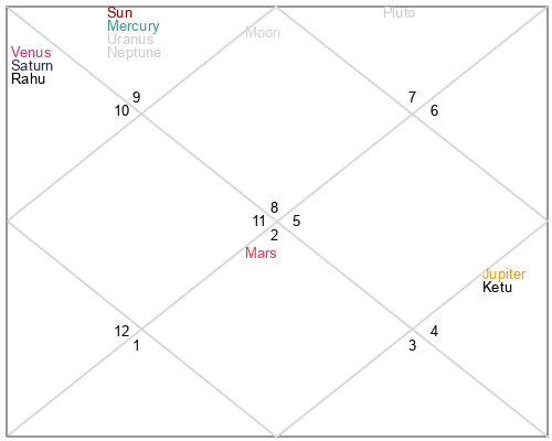 | Rahu | 28 Capricorn 30 | 0 Aries 52 | 26 Capricorn 42 |