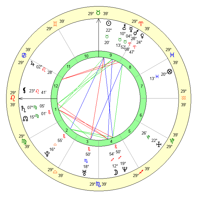 | Mars | 28 Aries 8 | 11 Leo 39 | 1 Gemini 52 |