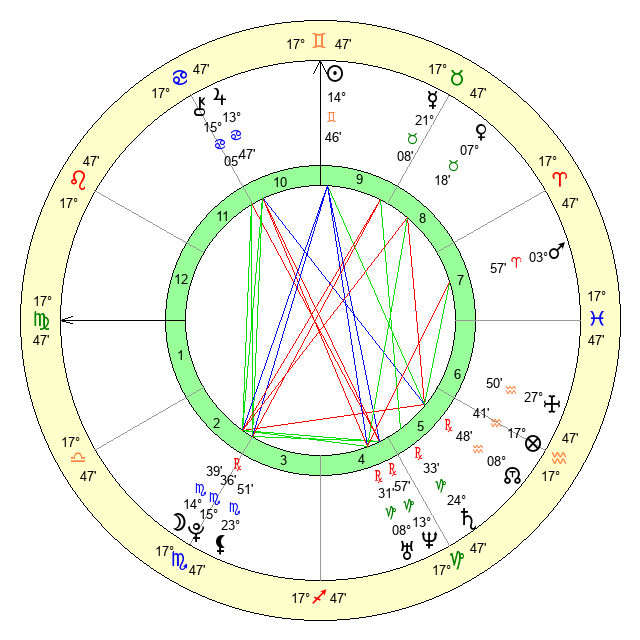 | Sun | 14 Gemini 46 | 15 Gemini 17 | 18 Cancer 10 |