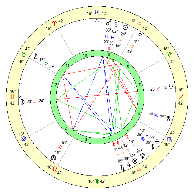 | Moon | 20 Gemini 30 | 8 Virgo 8 | 19 Capricorn 2 |