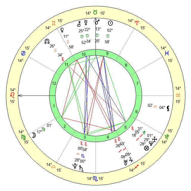| Mars | 13 Taurus 21 | 2 Leo 20 | 13 Gemini 12 |