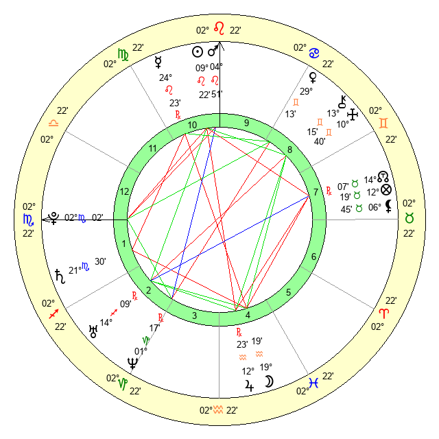 | Saturn | 21 Scorpio 48 | 1 Aries 30 | 23 Scorpio 28 |