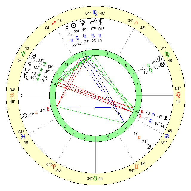 | Moon | 21 Gemini 10 | 28 Virgo 19 | 13 Libra 16 |