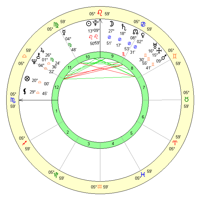 | Pluto | 9 Leo 59 | 2 Aquarius 17 | 11 Leo 43 |
