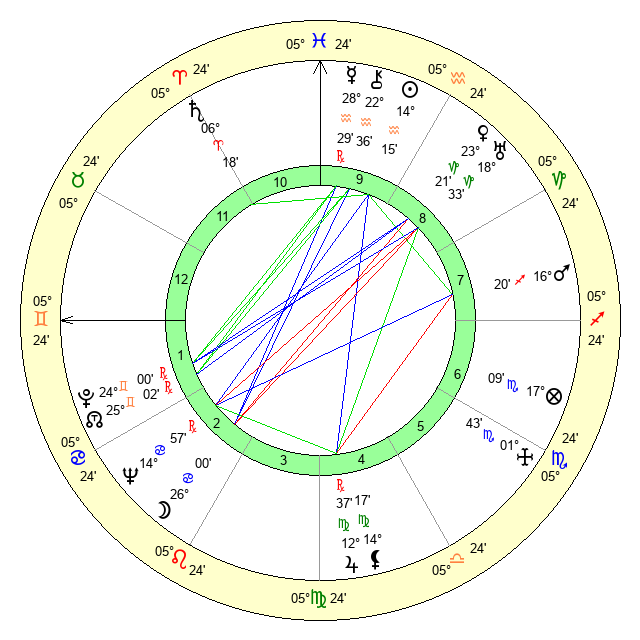 | Sun | 14 Aquarius 16 | 15 Aquarius 7 | 8 Gemini 37 |
