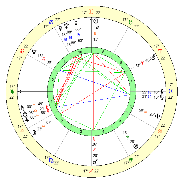 Sun | 14 Gemini 13 | 15 Gemini 17 | 23 Virgo 2 |