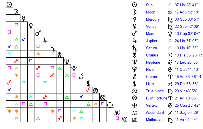Moon | 17 Aquarius 47 | 25 Capricorn 16 | 22 Scorpio 44 |