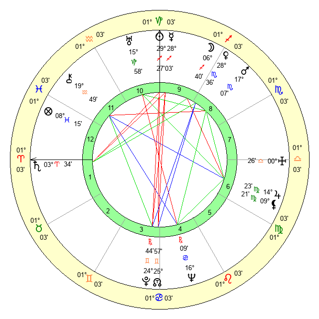 | Moon | 6 Sagittarius 40 | 17 Virgo 1 | 7 Pisces 11 |
