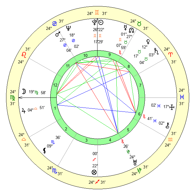 | Moon | 20 Virgo 9 | 0 Aquarius 3 | 28 Scorpio 16 |