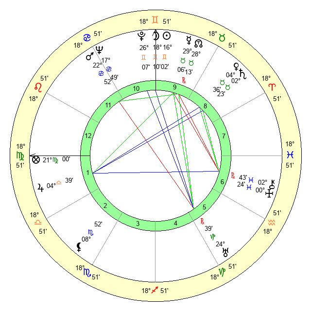 | Moon | 18 Gemini 13 | 7 Scorpio 9 | 6 Virgo 5 |