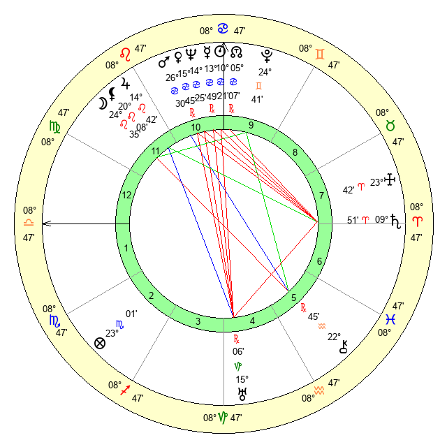 | Moon | 24 Leo 34 | 9 Libra 59 | 2 Sagittarius 40 |