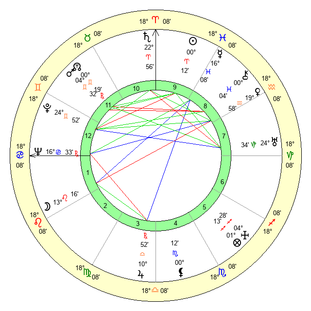 | Neptune | 16 Cancer 33 | 29 Pisces 40 | 19 Cancer 9 |
