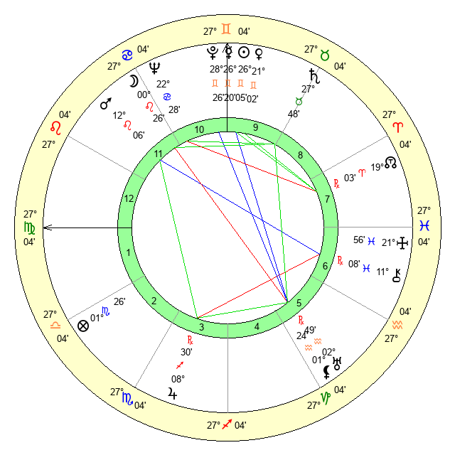 | Sun | 26 Gemini 5 | 26 Gemini 45 | 15 Libra 2 |