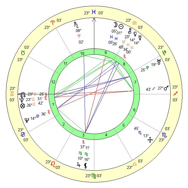 | Sun | 1 Pisces 27 | 2 Pisces 18 | 24 Gemini 52 |