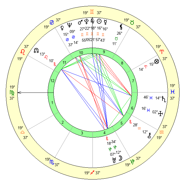 | Mercury | 16 Gemini 44 | 29 Gemini 30 | 19 Libra 57 |