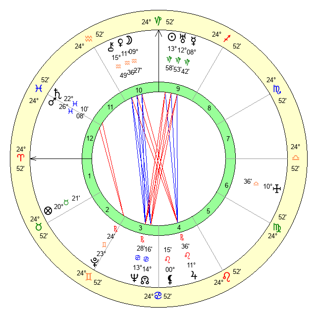 | Pluto | 23 Gemini 24 | 1 Aquarius 12 | 23 Gemini 19 |