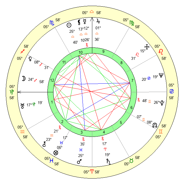| Sun | 25 Libra 40 | 26 Libra 34 | 23 Aquarius 8 |