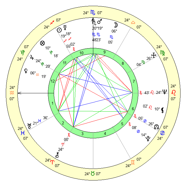 | Mars | 19 Scorpio 24 | 5 Leo 58 | 28 Capricorn 45 |