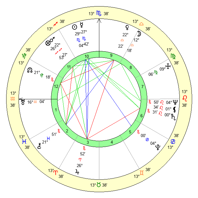 | Moon | 12 Libra 14 | 14 Leo 35 | 27 Virgo 29 |