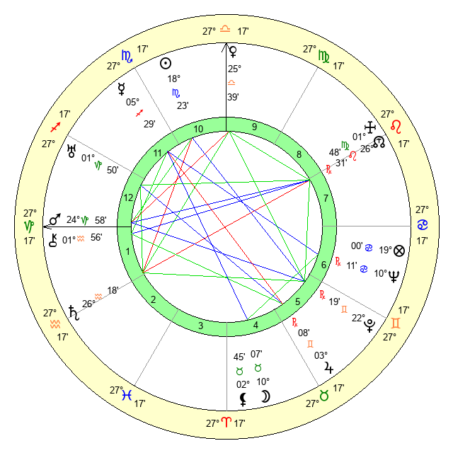 | Moon | 16 Scorpio 43 | 0 Aquarius 3 | 5 Aries 17 |