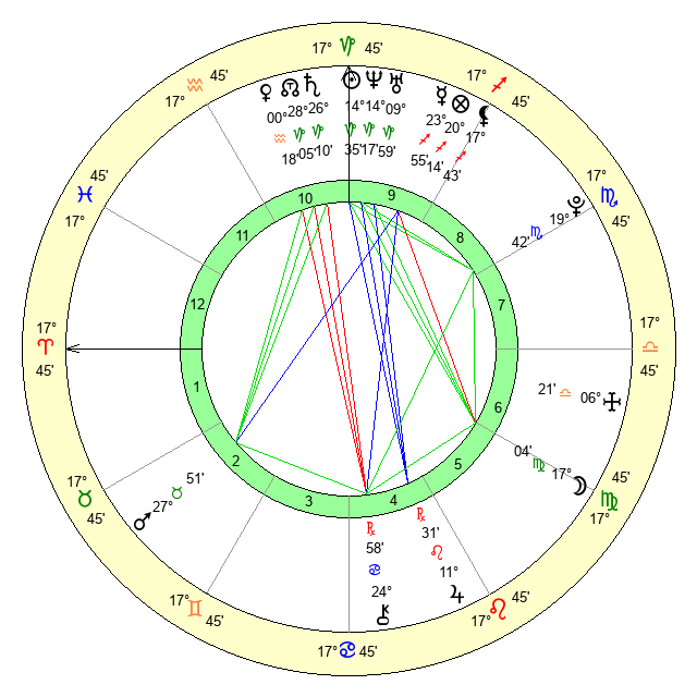 | Moon | 17 Virgo 1 | 25 Pisces 17 | 9 Sagittarius 38 |