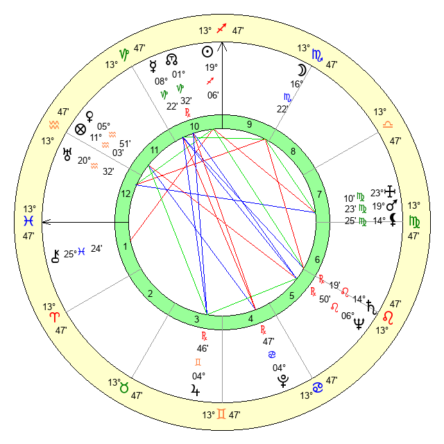 | Mars | 19 Virgo 23 | 6 Leo 1 | 18 Virgo 50 |