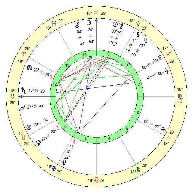 | Moon | 24 Aquarius 59 | 0 Scorpio 12 | 11 Aries 34 |