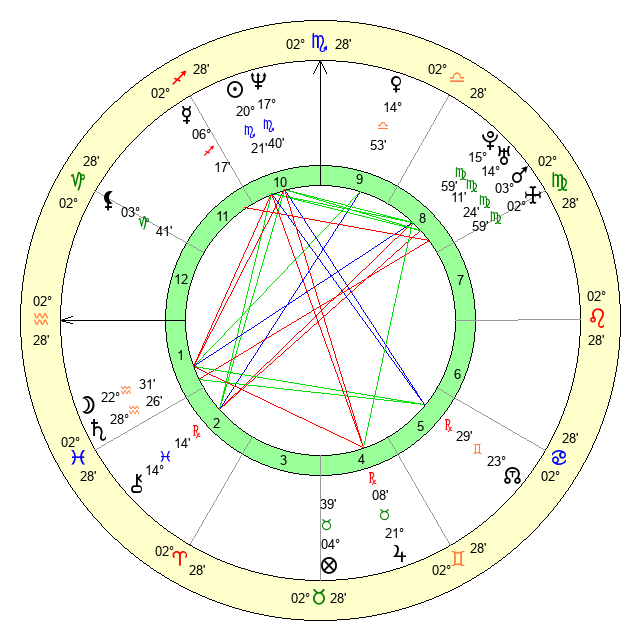 | Mars | 3 Virgo 25 | 5 Sagittarius 53 | 26 Virgo 31 |