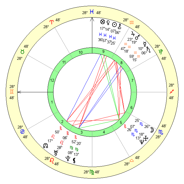 | Venus | 14 Pisces 58 | 10 Aries 37 | 2 Gemini 50 |