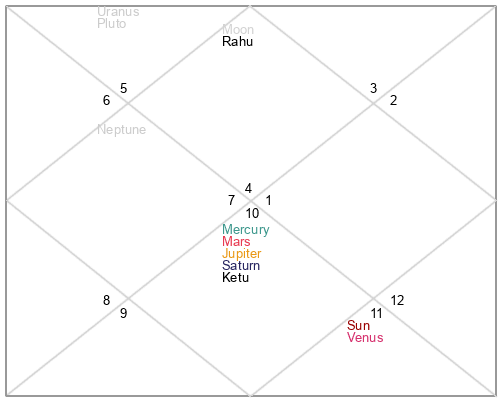 | Ketu | 17 Aquarius 32 | 29 Virgo 1 | 14 Aquarius 12 |