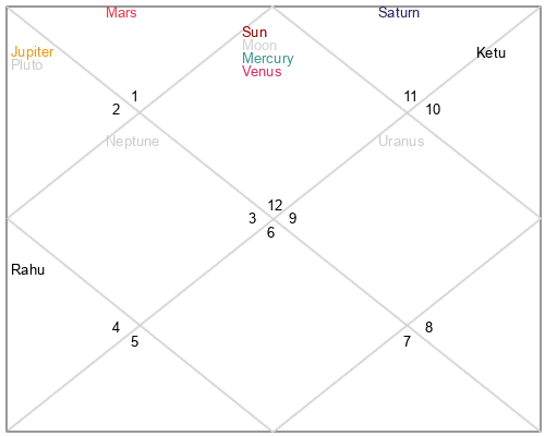 | Venus | 13 Aries 52 | 1 Aries 1 | 7 Virgo 45 |