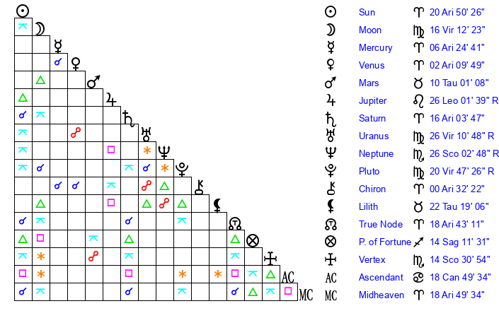 Moon | 16 Virgo 13 | 25 Virgo 18 | 17 Libra 41 |