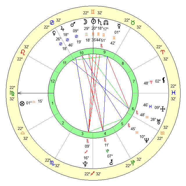 | Neptune | 10 Aquarius 45 | 2 Aries 1 | 10 Aquarius 18 |