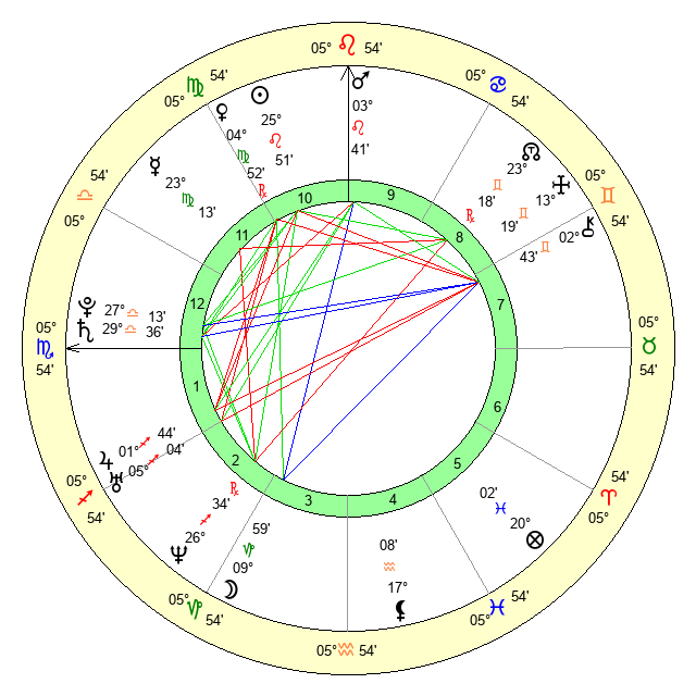 | Mercury | 23 Virgo 13 | 8 Leo 7 | 18 Virgo 53 |