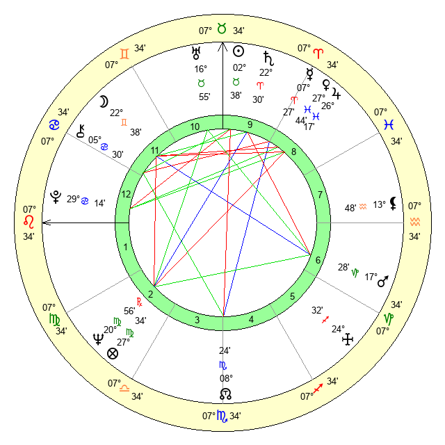 | Moon | 22 Gemini 44 | 6 Pisces 54 | 21 Leo 4 |