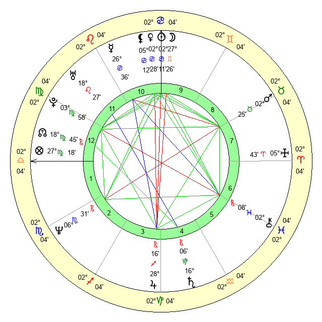 | Moon | 27 Gemini 23 | 8 Gemini 40 | 7 Scorpio 34 |