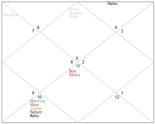 | Ketu | 17 Aquarius 23 | 28 Virgo 51 | 14 Aquarius 2 |