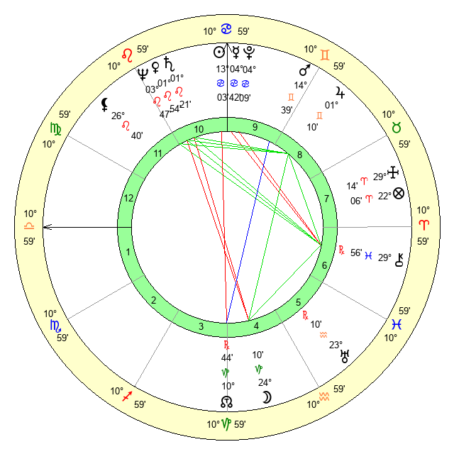 | Sun | 13 Cancer 3 | 13 Cancer 55 | 27 Libra 43 |