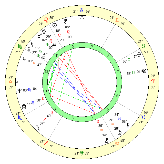 Venus | 19 Virgo 43 | 13 Cancer 9 | 9 Sagittarius 33 |