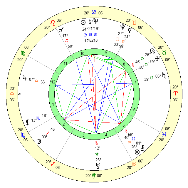 | Jupiter | 7 Libra 21 | 8 Cancer 36 | 29 Libra 23 |