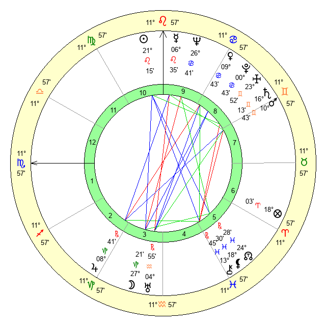 | Mercury | 6 Leo 35 | 4 Leo 55 | 22 Scorpio 59 |