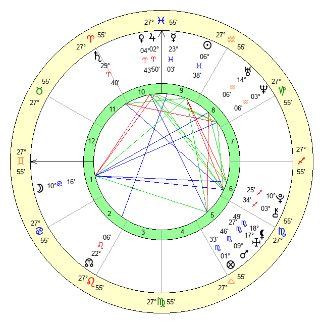 | Jupiter | 2 Aries 55 | 12 Gemini 1 | 9 Aries 5 |