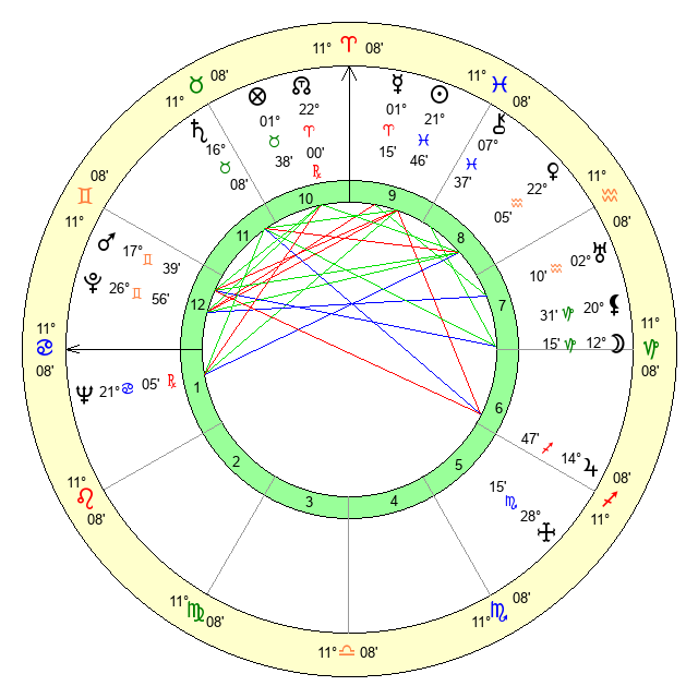| Sun | 21 Pisces 46 | 22 Pisces 22 | 11 Cancer 21 |